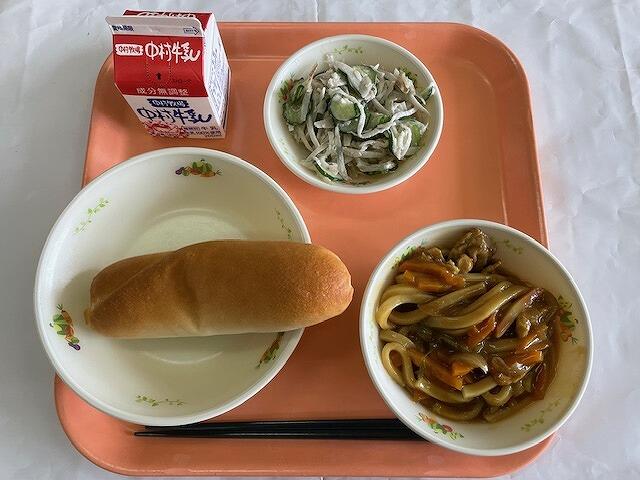 減量米粉パン カレーうどん かみかみサラダ 牛乳