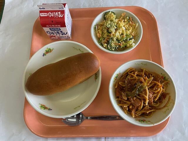 減量黒糖パン ひむかナポリタンスパゲッティ ミモザサラダ 牛乳