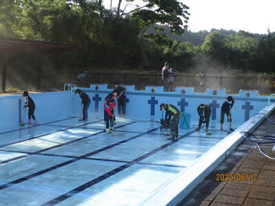 6月12日(日)朝7時よりPTAによる愛校作業が行われました。早朝でしたが、日差しが強く、皆さん汗だくになりながらも一生懸命にプール掃除をしてくださいました。そのおかげで、今年も、子どもたちがきれいなプールで水泳の学習ができそうです。ありがとうございました。