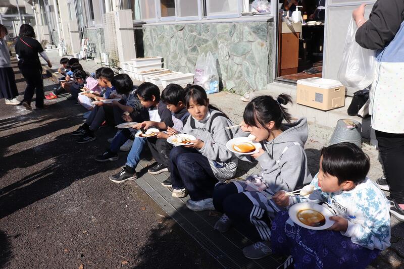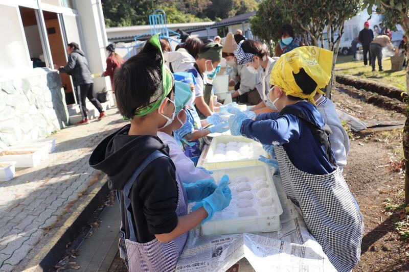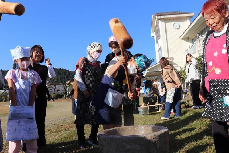 持久走大会として5分間走に挑戦し、児童一人ひとりが自分の目標を設定し、達成をめざして力いっぱい走りました。大会後は、PTA・地域の皆様のご協力による恒例の餅つきが行われ、前日の準備から当日の運営まで温かな支えに満ちた一日となりました。つきたてのお餅を子どもたちは笑顔で味わい、地域とのつながりを感じる貴重な時間となりました。