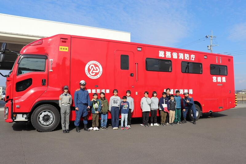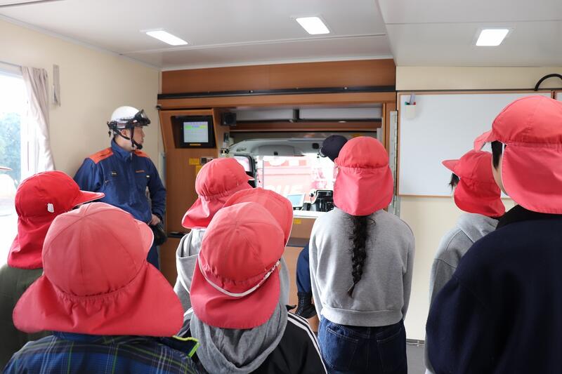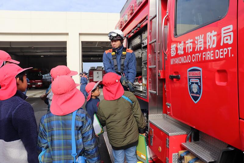 1月19日、社会科見学の一環として、都城北消防署を訪問しました。はじめに、消防署の仕事や役割について分かりやすく説明していただき、私たちの安全な暮らしが多くの人の努力によって守られていることを学びました。その後、消防車や救急車の見学等などを行い、消防士の仕事の大変さや責任の重さを実感しました。子どもたちは、真剣な表情で話を聞いたり、積極的に質問したりする姿が見られ、学びの多い時間となりました。お忙しい中、丁寧にご指導くださった消防署の皆様に心より感謝いたします。