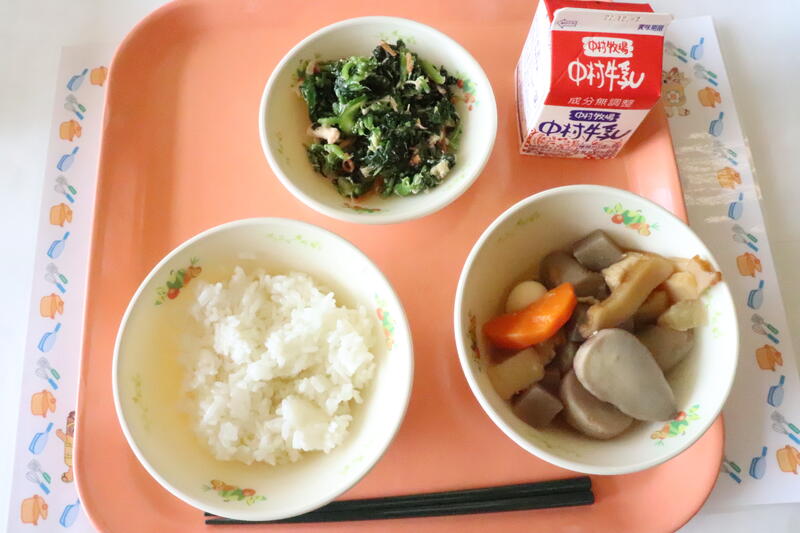 ごはん、筑前煮、白菜のおかか和え、牛乳