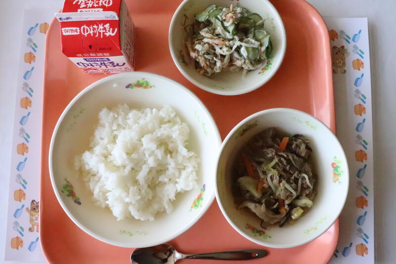牛丼、千切り大根のマヨネーズ和え、牛乳