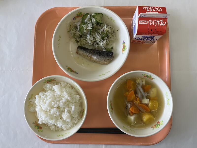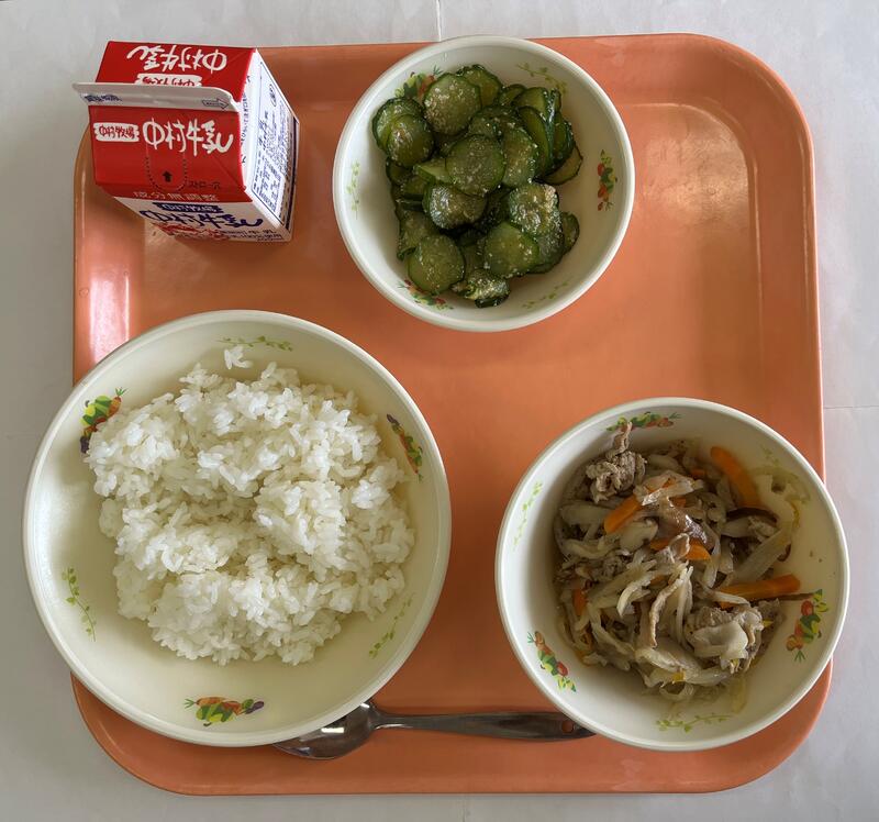 ご飯 切り干し大根のイリチー カボチャの味噌汁 牛乳