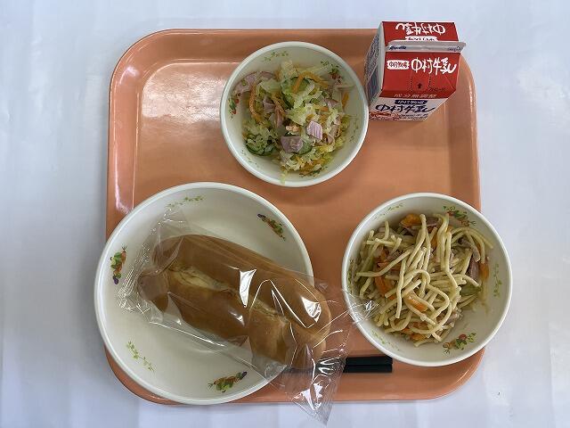 減量マヨネーズパン 和風スパゲティ 日向夏ドレッシング 牛乳