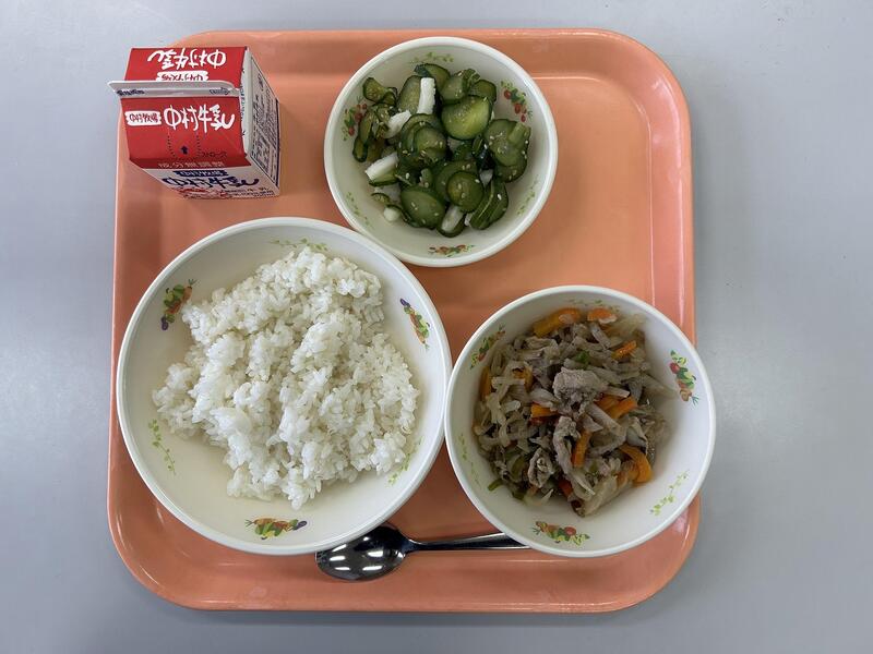 宮崎野菜の豚丼 イカと胡瓜の中華漬け 牛乳