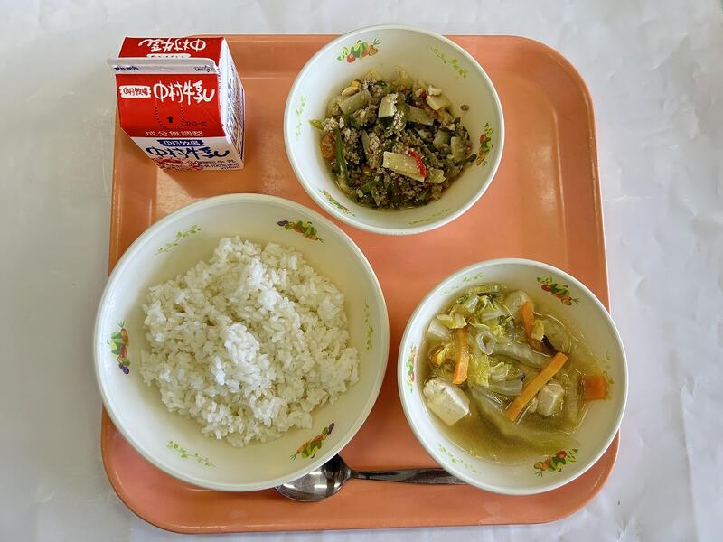 ご飯 豆腐チャンプルー 胡瓜の昆布和え 牛乳