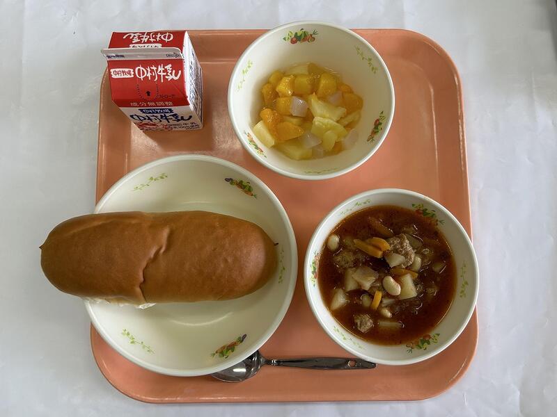 チーズパン ミートボールのトマト煮 フルーツポンチ 牛乳