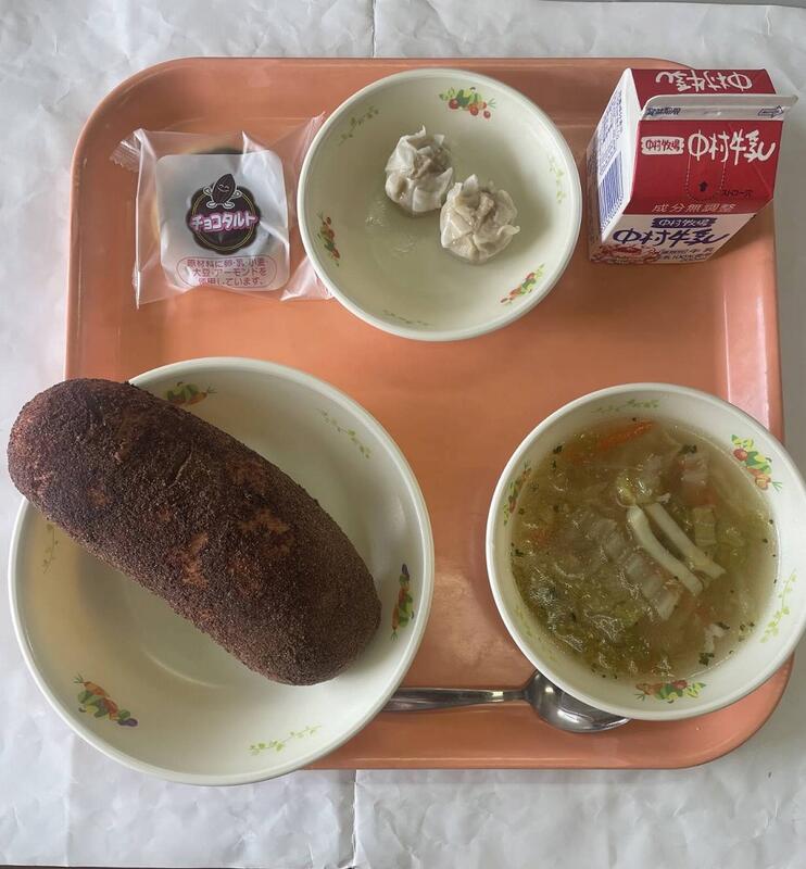 ココア揚げパン シューマイ コーンスープ チョコタルト