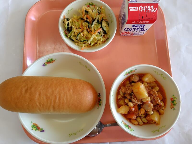ミルクパン チリコンカン ミモザサラダ 牛乳