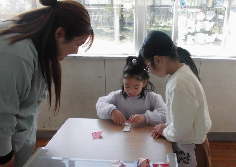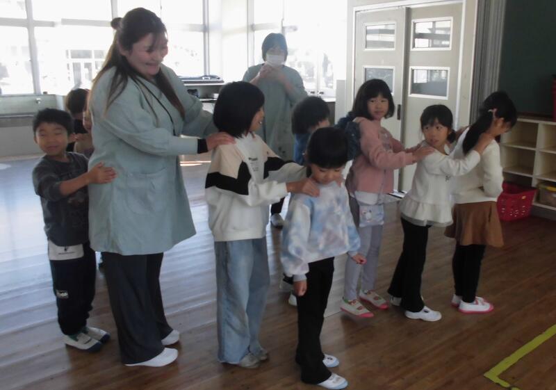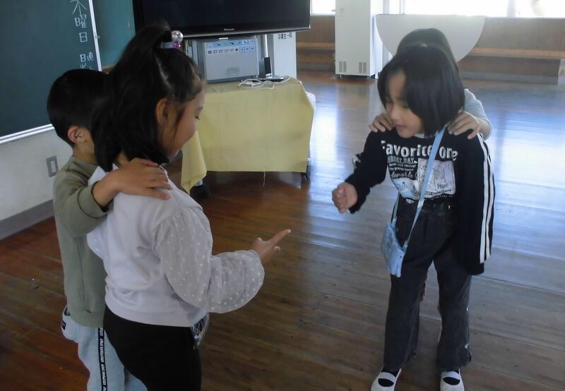 善長寺保育園の年長児さんが来て、1・2年生と交流しました。 1・2年生は、遊ぶ準備やプレゼントとの準備をして楽しみに待っていました。じゃんけん列車や昔の遊びを一緒にする中で、優しく教えたり誘ったりする姿が見られとても楽しそうでした。プレゼントの中には、「えひらしょうで まってるよ」とお手紙がありました。3月までに一緒に給食を食べたり昼休みに遊んだりする予定です。また一緒に遊びましょうね。