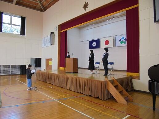 本日は修了式でした。1年生と4年生の代表児童が作文発表を行いました。