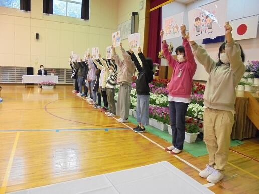5・6年生のお兄さん、お姉さんが歓迎の言葉でお祝いしてくれました。