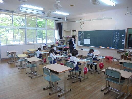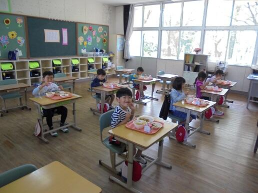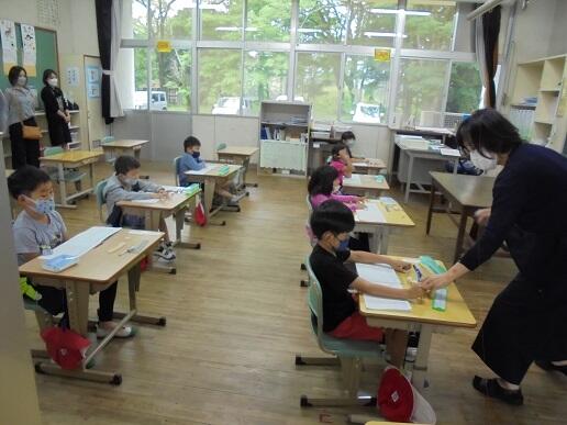 新入学児童は右側の方から出席番号順に座ることになっています。