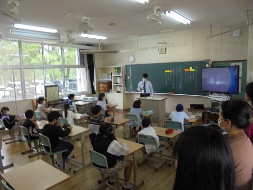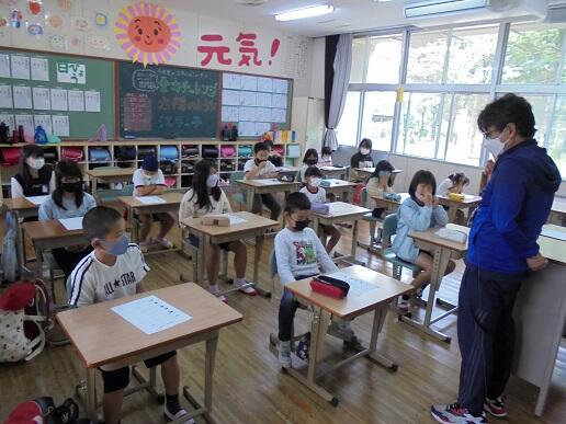 3・4年の参観授業は、外国語活動でした。数を英語で歌うことにチャレンジしていました。