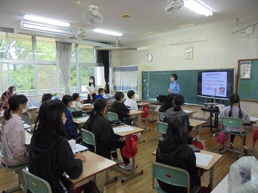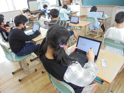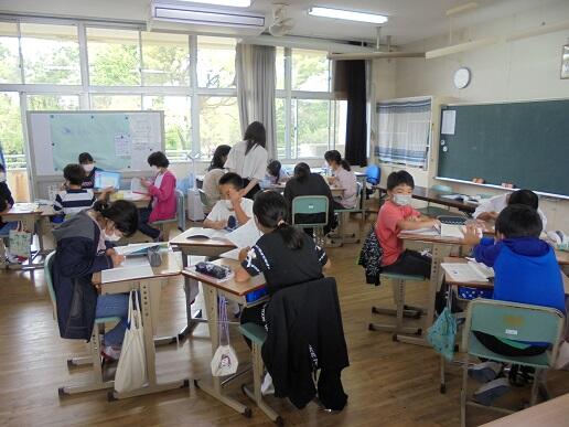 3・4年は道徳で自分のよいところの学習、5・6年は国語でインタビューをして発表するまでの学習でした。