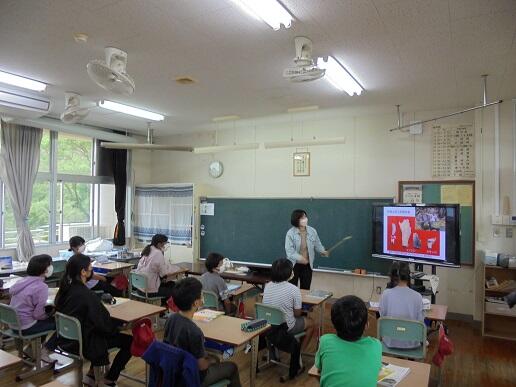 3・4年の外国語活動、5・6年の外国科の授業を教えて下さいます。