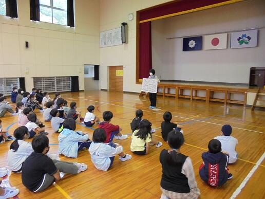 昨日は運動場が2・3年生、今日が体育館が4・5年生、運動場が6年生でした。