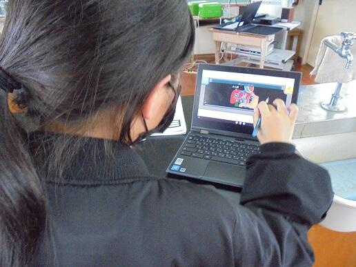 中でも、5・6年生は総合的な学習の時間で調べていることをタブレットで伝え合う場面がありました。