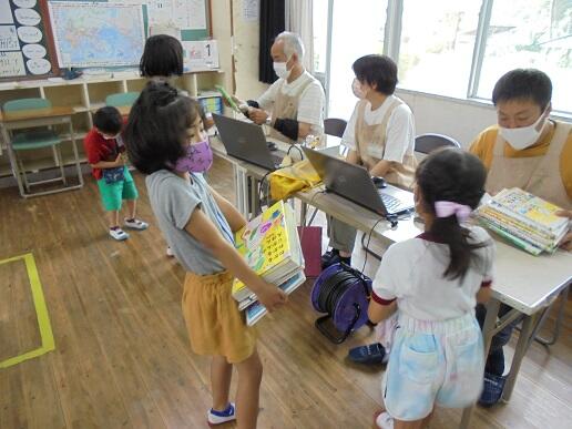 昨日は1年が運動場、2・3年が体育館、上学年が教室や図書室の割り当てでした。