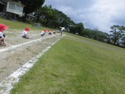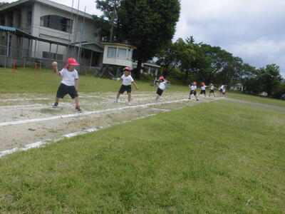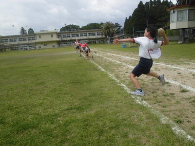 6月7日の体力テストに向けて、1・2年生はソフトボール投げの練習をしました。