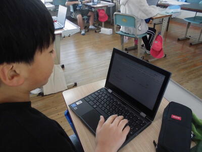 5・6年生の教室では、「おいろぐ(都城版デジタルCP)」から「リフレクションノート」を使って、2学期の学びの振り返りをしていました。児童は、自分で立てた目標と照らし合わせて、できるようになったこと等をふり返ることで、自分の成長とこれからの課題をもつことができました。