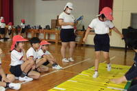 年長さん達に遊び方を教えている姿は、12年生も立派なお兄さん、お姉さんでした。あっという間に交流時間が終わり、最後に年長さんが「楽しかった。」と笑顔一杯で感想を述べてくれました。
