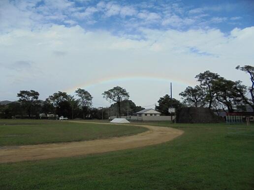 虹の下には、きれいに整備された運動場があります。