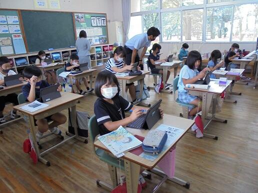 1年の国語「うみのかくれんぼ」の学習では、タブレットを活用しました。