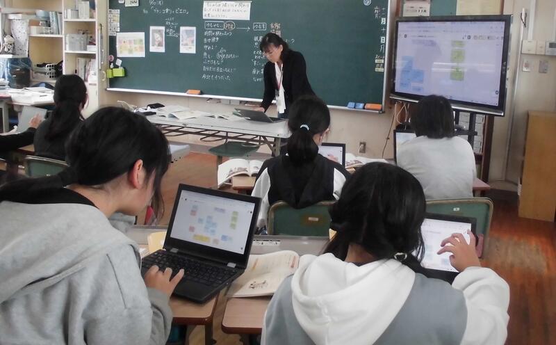 <タブレット上の吹き出しを使って考えを共有・発表>
