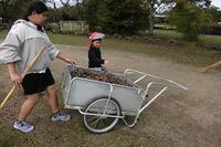 江平小の清掃活動は縦割り清掃(1年生から6年生までの児童混在のグループをつくってそれぞれ分担箇所を清掃)をしています。今日も6年生が1年生にホウキの使い方を教えたり、リアカーを一緒にひいたりする姿が随所に見られました。江平っ子達は、このような活動を日常的に続けています。そして、上級生が下級生に優しくすることで、下級生が上級生になった時に、同じように下級生に優しく接することができるのだなあと感じました。