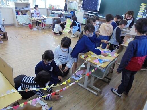 善長寺保育園の園児7名を招いて、1・2年生が交流活動を行いました。