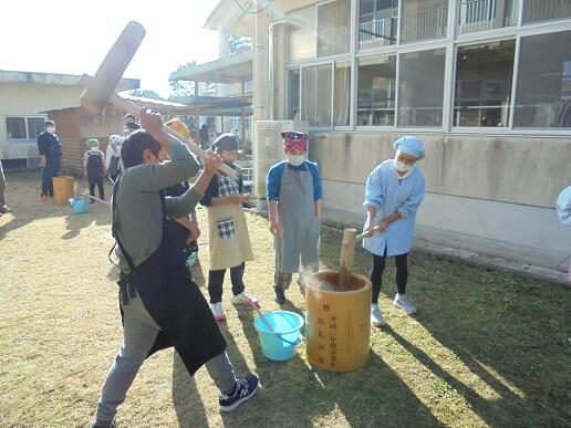 4・5・6年生が保護者の方々のご協力をいただき、もちつきを行いました。