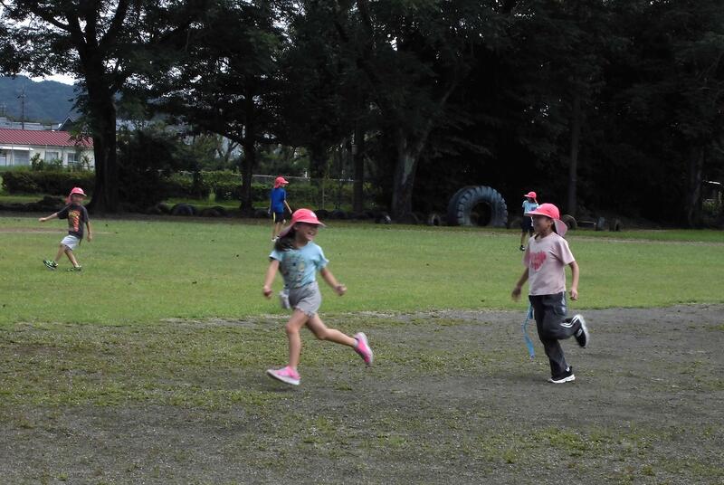1回目は、自分のしっぽを取られたら、もう相手のしっぽを取りに行けないルールでしたが、2回目は、自分のしっぽを取られても取りに行って、しっぽを増やすことができるようになりました。子ども達は、運動場を楽しそうに走り回りました。