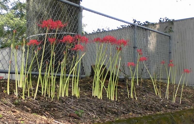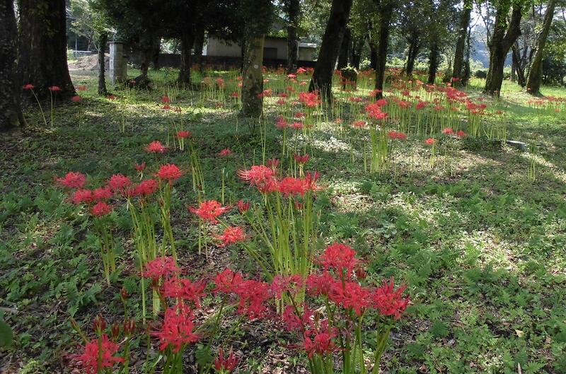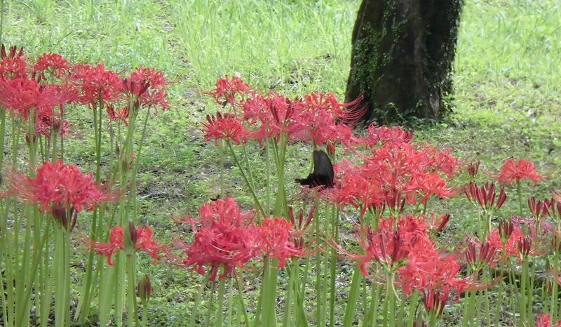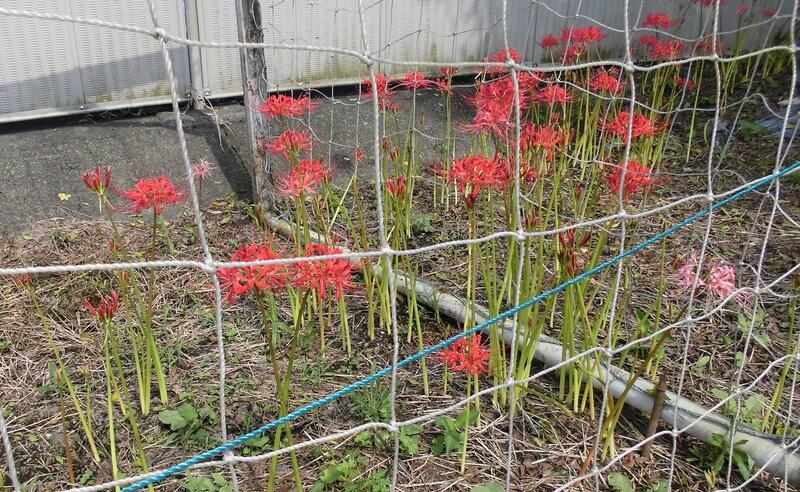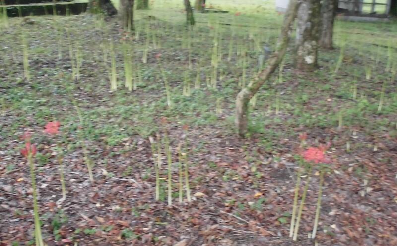 彼岸花は、赤いつぼみが増えました。花もちらほら咲いています。見ごろは、来週末くらいになりそうです。