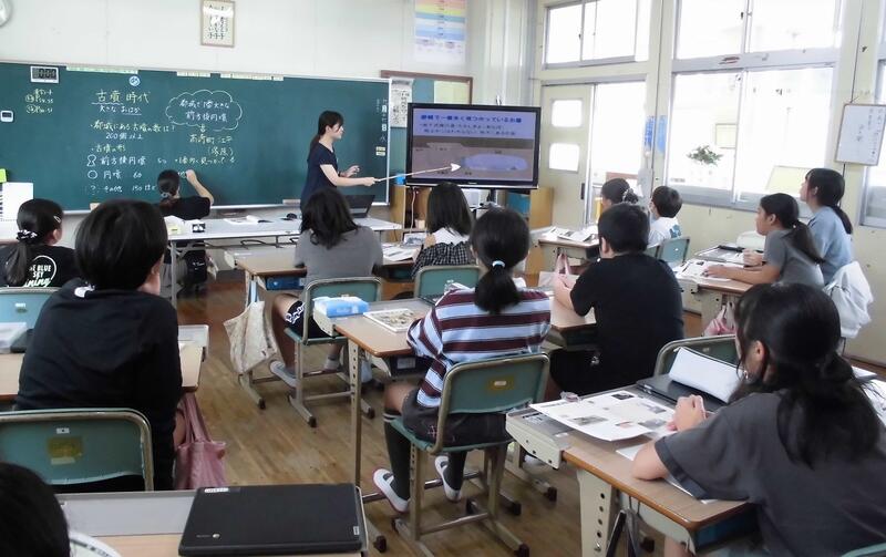 都城市文化財課から3名来ていただき、5・6年生が古墳やその時代について学習しました。今年度2回目の出前授業です。学習の中で、身近な高崎町・江平地区の古墳についても教えていただきました。また、古墳の中や埋蔵品などを、タブレットPCを使って3D(立体映像)で見ることもでき、歓声が上がっていました。