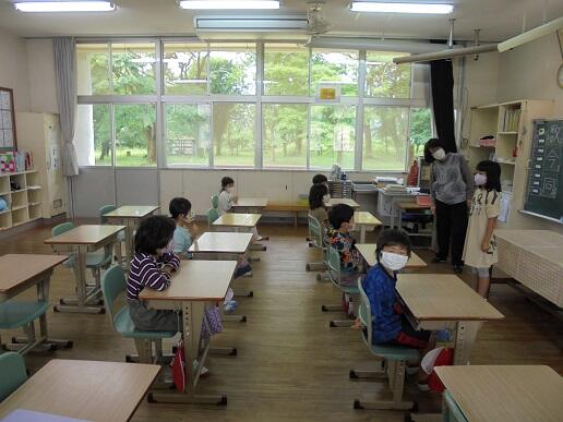 今日は笛水小の全校児童が江平小にバスで来てくれて、二校での交流学習を行い、いろいろな授業を体験しました。