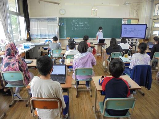 中でも、5・6年生は総合的な学習の時間で調べていることをタブレットで伝え合う場面がありました。