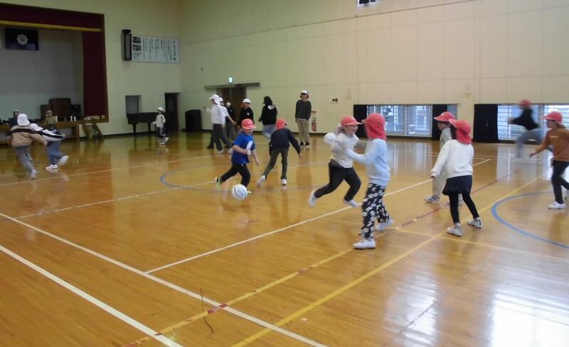 今日のみんなで遊ぼうの日は、ドッジボールでした。やわらかいボールを使って遊びました。1・2年生には、転がしてあてようとする優しさも見られました。はじめは1個だったボールが2個へ。動きがだんだん速くなります。2個かと思ったらボールが3個へ。ものすごい速さで動き回りました。汗いっぱい楽しい昼休みを過ごしました。