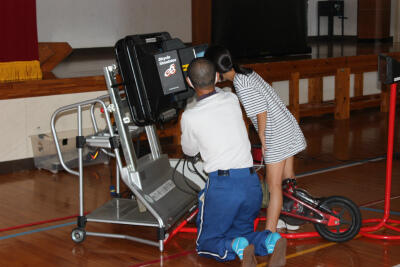 1・2年生は横断歩道の渡り方、3年生以上は自転車の安全な乗り方について学びました。話を聞いたりシミュレーターで疑似体験したりしました。