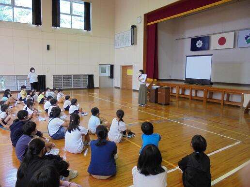 本日、都城土木事務所から講師を招いて、土砂災害防止教室が行われました。3年生以上が参加しました。
