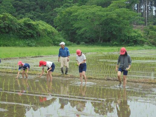 3年生以上の児童が田植え体験を行いました。地域の方に支えていただき、誠にありがとうございました。