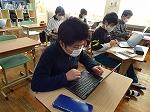 5・6年生は、2学期をふりかえって、「おいろぐ」の記入をしていました。2学期に特に思い出に残った運動会や収穫祭等を選び、写真を探して貼り付け、コメントを書いていきました。現在の自分の振り返りはもちろん、未来の自分が読んでも楽しいものになるでしょうね。あおぞら学級では、ペリー先生と一緒に、クリスマスバージョンのカードで神経衰弱をしていました。サンタクロースやクリスマスツリー、靴下など、クリスマスに関する絵が載っていて、ひっくり返して英語で答えていました。2枚の絵が揃えばもらえます。楽しく季節の行事や英語に触れられていいですね。