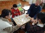 1・2年生は算数でした。1年生は2学期の学習内容が終わり、復習問題をしていました。たし算やひき算の計算問題は、すらすら解けるようになっていました。すばらしいですね。2年生は「三角形と四角形」の学習で、三角形や四角形の形の厚紙を使って、いろいろな模様づくりに取り組んでいました。教科書の絵を見ながら、三角形と四角形を組み合わせて模様ができていました。