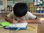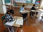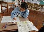 1・2年生は国語で漢字の学習でした。1年生は「にているかん字」で、一年生で習った80文字の中から似ている漢字を見つけていました。「人と入」「右と石」「貝と見」「字と学」などが出てきていました。間違えずにしっかり覚えましょう。2年生は、イラストに載っている漢字を使って、主語・述語のつなぎ方に気を付けて文章を書いていました。漢字と文法の両方の力が試されます。なかなか楽しそうでした。