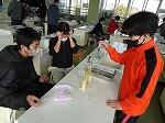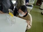 5・6年生は理科で、「水溶液の性質」の続きでした。本時では「金属に薄い塩酸を加えるとどうなるのだろうか」という問題を追究していました。予想が「くさくなる」「煙が出る」「ブクブク泡が出る」等、たくさん出ており実験結果も楽しみです。試験管に、鉄(スチールウール)とアルミニウム(アルミ箔)を入れたものを2組作り、それぞれに水と薄い塩酸を3ccずつ注ぎました。それをじっくりと観察します。さて結果は如何に?