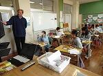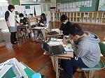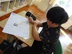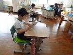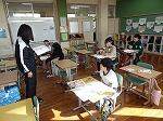 4年生は算数で、立方体や直方体の見取り図の学習でした。展開図を見て、それを見取り図でかくといった問題に挑戦していました。まず、どこを正面にするかを決めてかいていかないといけません。苦戦しながらもだんだんとそれらしい見取り図が出来上がっていました。