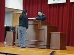 第1回目ということもあり、座り方の指導や礼のタイミングなどについて話がありました。その後、式次第に沿って全体を流していきました。卒業生入場から始まり、卒業証書授与、各あいさつの礼の仕方、歌等を進めていきました。卒業生は事前に練習をしていただけあって、スムーズに流れました。それでも、他の先生方からはよりよい卒業式になるように意見が出されました。礼する場所や回数、会場の配置図、歌の声の大きさ等、少しずつ改善しながら卒業式を迎えたいと思います。
