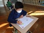 1年生は生活科で「1年生をむかえよう」という学習でした。これまでの先輩たちが作成したカードを見ながら、新1年生をむかえるカードを作成していました。初めに自分の似顔絵を描き、その後、メッセージやイラストを添えていきます。もうすぐ先輩になるんだという自覚が芽生えたのではないでしょうか?