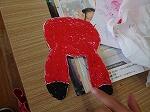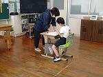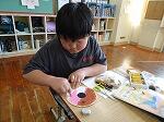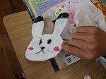 3・4年生は図画工作で、「このかたち、へんしんすると」という題材でした。例えば三角形の表にトライアングルを描き、裏におにぎりの絵を描くといった具合です。みんないろんな形を考え、裏返して別なものに変身させていました。下の写真は、うさぎさんがいすに変身しています。アイデアを形にするって楽しそうですね。